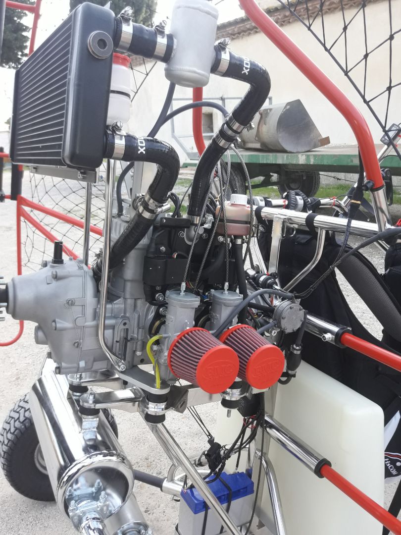 Moteur ROTAX 582 reconditionné à neuf par HSCom, refroidissement liquide, double allumage avec contrôle magnéto, double carburateur.